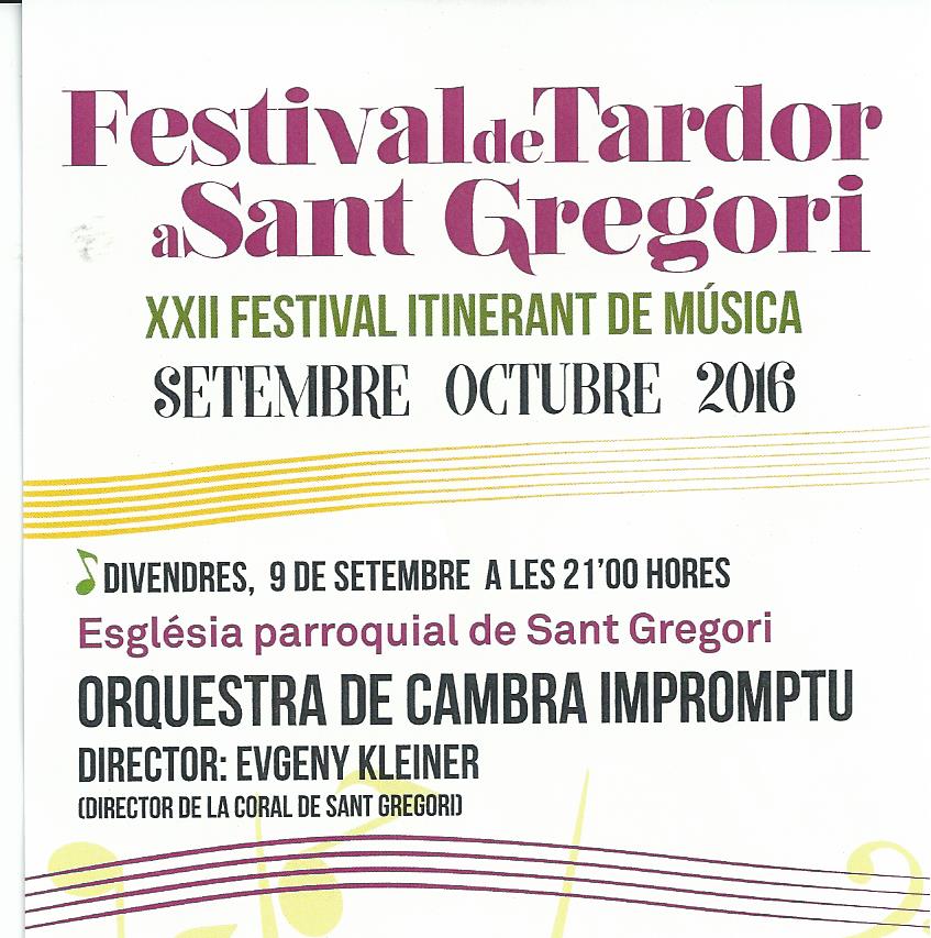 1 de maig a les 12 hores missa i petit concert de la Festa de la Gent Gran de Sant Gregori.